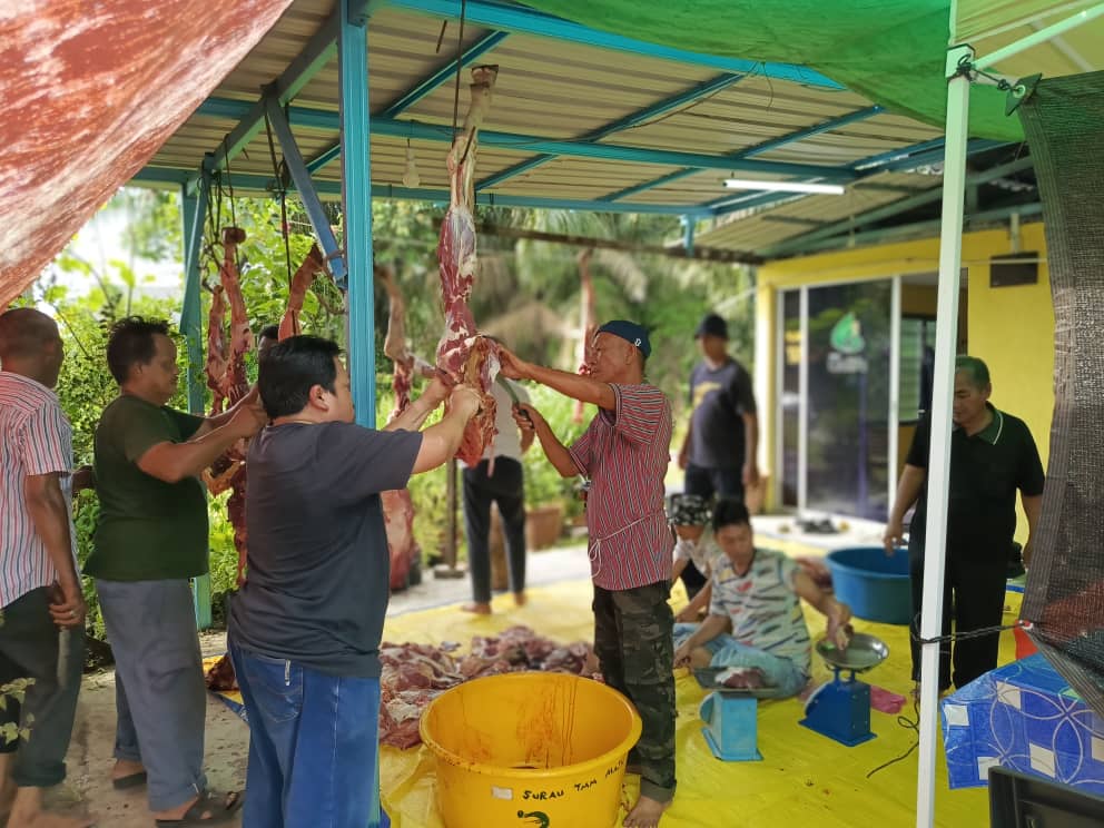 Proses melapah daging 2 ekor lembu dan membungkus di Pejabat Yayasan Qalifa di Bukit Kapar, sebahagian penerima sumbangan “Daging Korban” hadir untuk mengambil daging , program diteruskan dengan menghantar daging korban kepada penerima yang tidak dapat hadir . Agihan di laksanakan di Bukit Kapar.